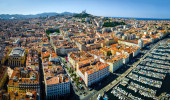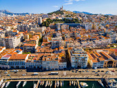 Widok z lotu ptaka na Basilique Notre-Dame-de-la-Garde w Marsylii, miasto portowe w południowej Francji