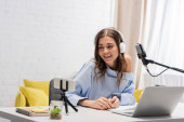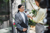 Zdjęcie "Azjatycki gospodarz radiowy w okularach i słuchawkach trzymających filiżankę kawy i patrzących w kamerę" może być wykorzystywane do celów osobistych i komercyjnych zgodnie z warunkami zakupionej licencji Royalty-free. Obraz jest dostępny do pobrania w jakości wysokiej rozdzielczości do 5760x3840.