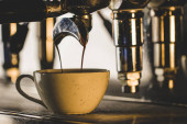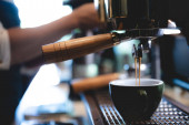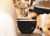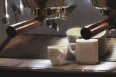 Czarno-białe filiżanki kawy w kawiarni lub kawiarni