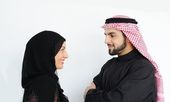 widok z boku arabskich Arabii Saudyjskiej para szuka siebie