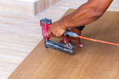 stolarz używać pistolet pneumatyczny do produkcji nowych mebli