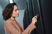 częściowy widok afrykańskiego technika operacyjnego panelu sterowania na serwerze