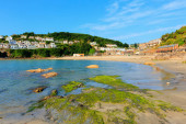 Looe Cornwall miasto i plaża i port z pięknym błękitnym morzem i niebo na południowy zachód od Wielkiej Brytanii