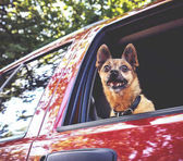 Basset okno samochodu i język