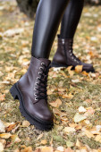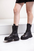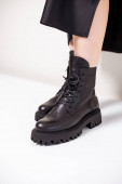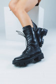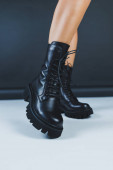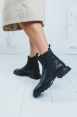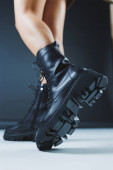 Czarne damskie buty z prawdziwej skóry. Nowa kolekcja zimowych butów dla stylowych dziewczynek. Modne damskie stylowe skórzane buty.