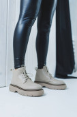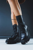 Zdjęcie "Czarne damskie buty z prawdziwej skóry. Nowa kolekcja zimowych butów dla stylowych dziewczynek. Modne damskie stylowe skórzane buty." może być wykorzystywane do celów osobistych i komercyjnych zgodnie z warunkami zakupionej licencji Royalty-free. Obraz jest dostępny do pobrania w jakości wysokiej rozdzielczości do 5760x3840.