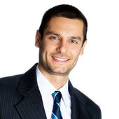portret szczęśliwy uśmiechający się biznesmen, na białym tle