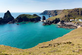 kynance Zatoka jaszczurka cornwall uk Anglii w piękny słoneczny dzień z błękitne niebo i morze
