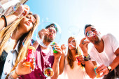 Zdjęcie "Grupa najlepszych przyjaciół z kciuki zabawy wakacje razem - pojęcie beztroski młodzieży i wolności na zewnątrz w przyrodzie podczas wakacji - vintage wygląd filtrowane" może być wykorzystywane do celów osobistych i komercyjnych zgodnie z warunkami zakupionej licencji Royalty-free. Obraz jest dostępny do pobrania w jakości wysokiej rozdzielczości do 5760x3840.