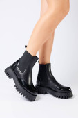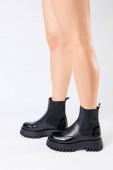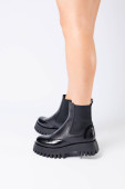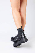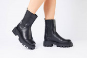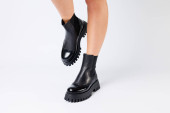 Nowa kolekcja damskich butów wiosna 2022 roku. Nogi dziewczyny w nowych butach. Nogi w czarnych butach. Buty do biegania z prawdziwej skóry