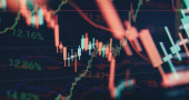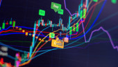 Schemat finansowy z piórem, dane z analizy zapasów dla biznesu na ekranie cyfrowym. Wykresy wzrostu forex rynku finansowego. diagram świecznik handlowy