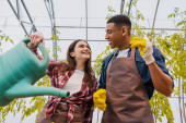 Zdjęcie "Pozytywny afrykański rolnik w fartuchu wskazujący ręką w pobliżu kolegi w szklarni, sztandar " może być wykorzystywane do celów osobistych i komercyjnych zgodnie z warunkami zakupionej licencji Royalty-free. Obraz jest dostępny do pobrania w jakości wysokiej rozdzielczości do 5760x3840.