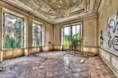 Opuszczony pokój z widokiem na przez piękną oranżerię złamane