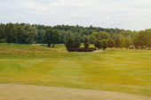 Azji mężczyzna w okularach przeciwsłonecznych spacery z seniorów wielonarodowych przyjaciół na polu golfowym