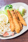 Głęboko smażone Tempura krewetki smuga z mayanase i omlet Krepowy