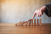 Zdjęcie "Zbliżenie obraz palca spróbuj zatrzymać spadające drewniane bloki domina dla koncepcji rozwiązania biznesowego " może być wykorzystywane do celów osobistych i komercyjnych zgodnie z warunkami zakupionej licencji Royalty-free. Obraz jest dostępny do pobrania w jakości wysokiej rozdzielczości do 5760x3840.