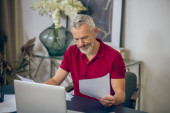 Zdjęcie "Szczęśliwy człowiek patrząc na laptopa siedzi w pokoju" może być wykorzystywane do celów osobistych i komercyjnych zgodnie z warunkami zakupionej licencji Royalty-free. Obraz jest dostępny do pobrania w jakości wysokiej rozdzielczości do 5760x3840.