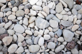 Góra widok tekstury żwirowa plaża z białymi kamieniami