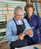 Zdjęcie "Sprzedawcy i klienta przy użyciu komputera typu Tablet" może być wykorzystywane do celów osobistych i komercyjnych zgodnie z warunkami zakupionej licencji Royalty-free. Obraz jest dostępny do pobrania w jakości wysokiej rozdzielczości do 5760x3840.