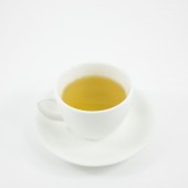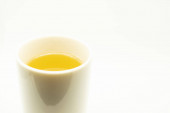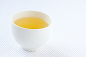 Zielona herbata na białym tle. Obraz japońskiej zielonej herbaty. Filiżanka herbaty izolowane na białym tle