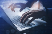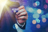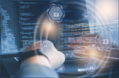 Zdjęcie "Ransomware, malware Cyber Security Concept, Cityscape w tonacji niebieskiej z tłem kodu technologicznego ikon bezpieczeństwa cybernetycznego i globalizacji sieci Internet na ekranie wirtualnym" może być wykorzystywane do celów osobistych i komercyjnych zgodnie z warunkami zakupionej licencji Royalty-free. Obraz jest dostępny do pobrania w jakości wysokiej rozdzielczości do 5760x3840.