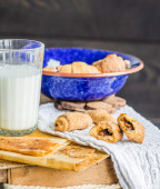 Przekrój Cinnabon cynamon rolkach śliwek, migdały i manda