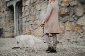 Zdjęcie "Low section of elegant senior man with his white dog outdoors in city in winter." może być wykorzystywane do celów osobistych i komercyjnych zgodnie z warunkami zakupionej licencji Royalty-free. Obraz jest dostępny do pobrania w jakości wysokiej rozdzielczości do 5760x3840.