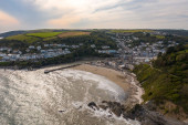 Piękne nadmorskie miasto Looe w Kornwalii Wielka Brytania widziane latem z powietrza