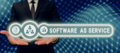 Zdjęcie "Koncepcyjne wyświetlanie oprogramowania jako usługi, Koncepcja znaczenie na żądanie licencjonowane na subskrypcji i centralnie hostowane" może być wykorzystywane do celów osobistych i komercyjnych zgodnie z warunkami zakupionej licencji Royalty-free. Obraz jest dostępny do pobrania w jakości wysokiej rozdzielczości do 5760x3840.