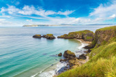 Zdjęcie "Carrick-a-Rede, Causeway Coast trasy w piękny letni dzień, Irlandia Północna, Wielka Brytania" może być wykorzystywane do celów osobistych i komercyjnych zgodnie z warunkami zakupionej licencji Royalty-free. Obraz jest dostępny do pobrania w jakości wysokiej rozdzielczości do 5760x3840.