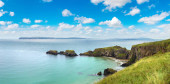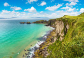 Carrick-a-Rede, Causeway Coast trasy w piękny letni dzień, Irlandia Północna, Wielka Brytania
