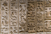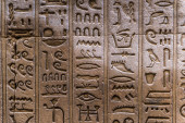 Egipskie hieroglify na ścianie świątyni Horusa w Egipcie
