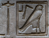 Egipskie hieroglify na ścianie świątyni Horusa w Egipcie