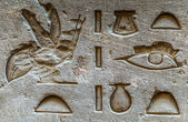 Egipskie hieroglify na ścianie świątyni Horusa w Egipcie