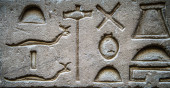 Egipskie hieroglify na ścianie świątyni Horusa w Egipcie