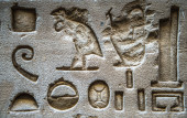 Egipskie hieroglify na ścianie świątyni Horusa w Egipcie