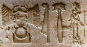 Egipskie hieroglify na ścianie świątyni Horusa w Egipcie