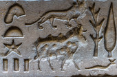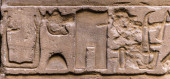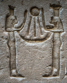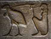 Egipskie hieroglify na ścianie świątyni Horusa w Egipcie