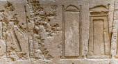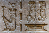 Egipskie hieroglify na ścianie świątyni Horusa w Egipcie