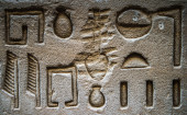 Egipskie hieroglify na ścianie w świątyni Sobka w Kom Ombo, Egipt