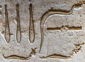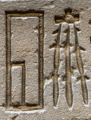 Egipskie hieroglify na ścianie w świątyni Sobka w Kom Ombo, Egipt