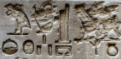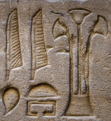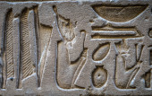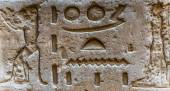 Egipskie hieroglify na ścianie w świątyni Sobka w Kom Ombo, Egipt
