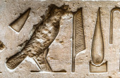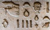 Egipskie hieroglify na ścianie w świątyni Sobka w Kom Ombo, Egipt
