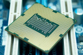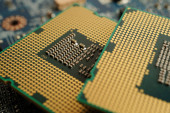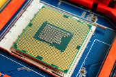 CPU, jednostka centralna procesora Chip na płytce drukowanej w technologii komputerów PC i laptopów.