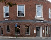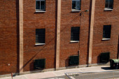Crosswalk on road near brick building on street in New York City