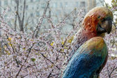 Bulgarian traditional spring decor martenitsa on the blossom tree. Baba Marta holiday