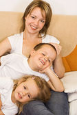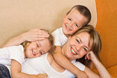 szczęśliwy sterty rodziny - rodzice i dzieci, zabawy
