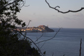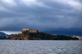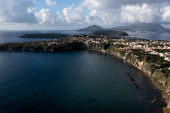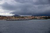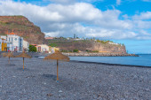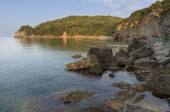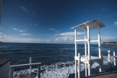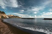 Colorful wooden hut on Chiaiai beach, Procida Island, Italy.