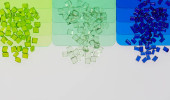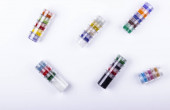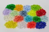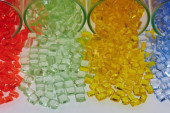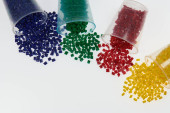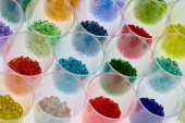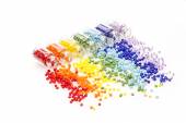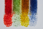 Kolorowe żywice plastikowe w probówkach szklanych w laboratorium