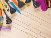 Zdjęcie "Widok górny miejsca pracy rzemiosła z drewnianymi łyżkami i pik lodów, pistolet kleju, nożyczki, malarz akrylowy, raffia papieru do podejmowania cute wielkanocny wystrój króliczka. Łatwe zabawy dzieci rzemiosła koncepcja. Widok z góry." może być wykorzystywane do celów osobistych i komercyjnych zgodnie z warunkami zakupionej licencji Royalty-free. Obraz jest dostępny do pobrania w jakości wysokiej rozdzielczości do 5760x3840.